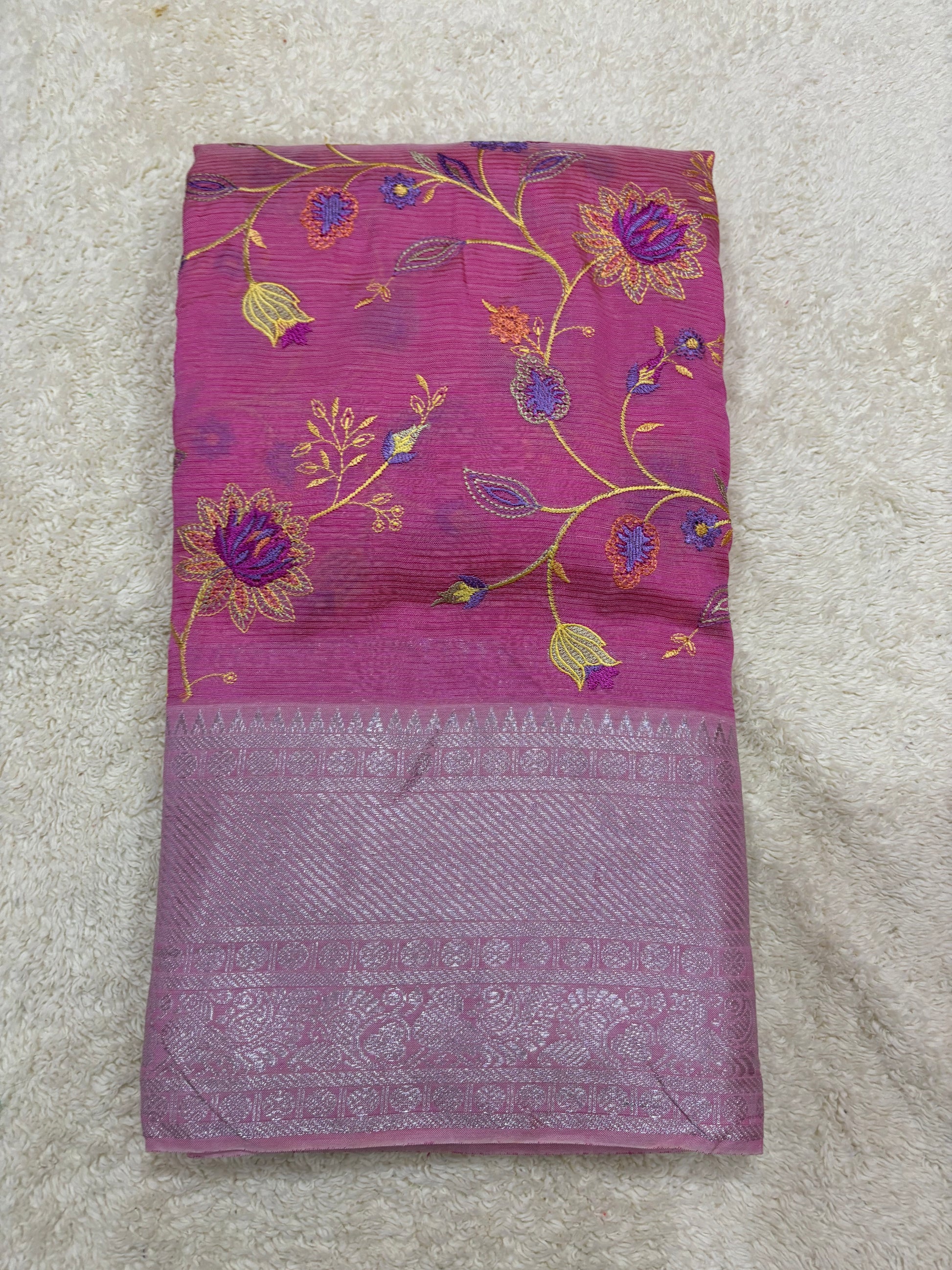 These sarees are with allover embroidery sarees. Perfect for celebrations or everyday sophistication, these sarees showcase the finest weaving techniques that have defined South Indian textile heritage for generations.