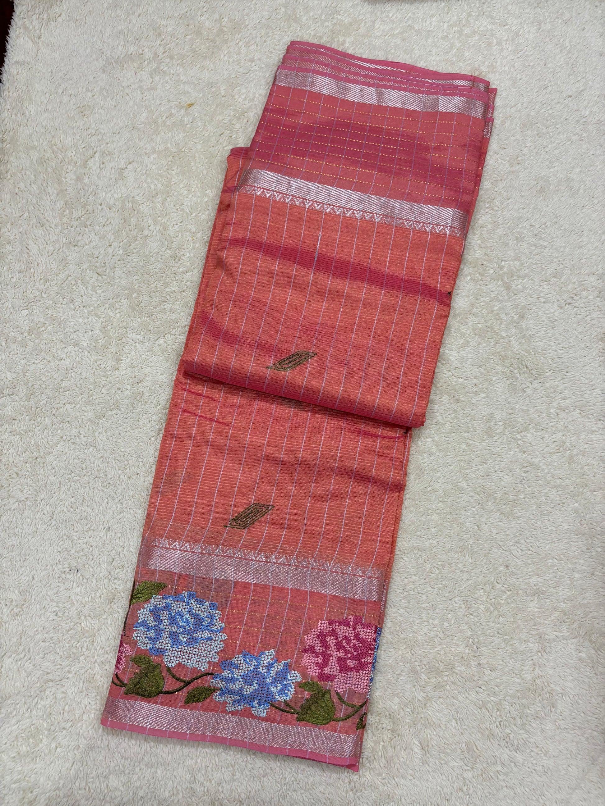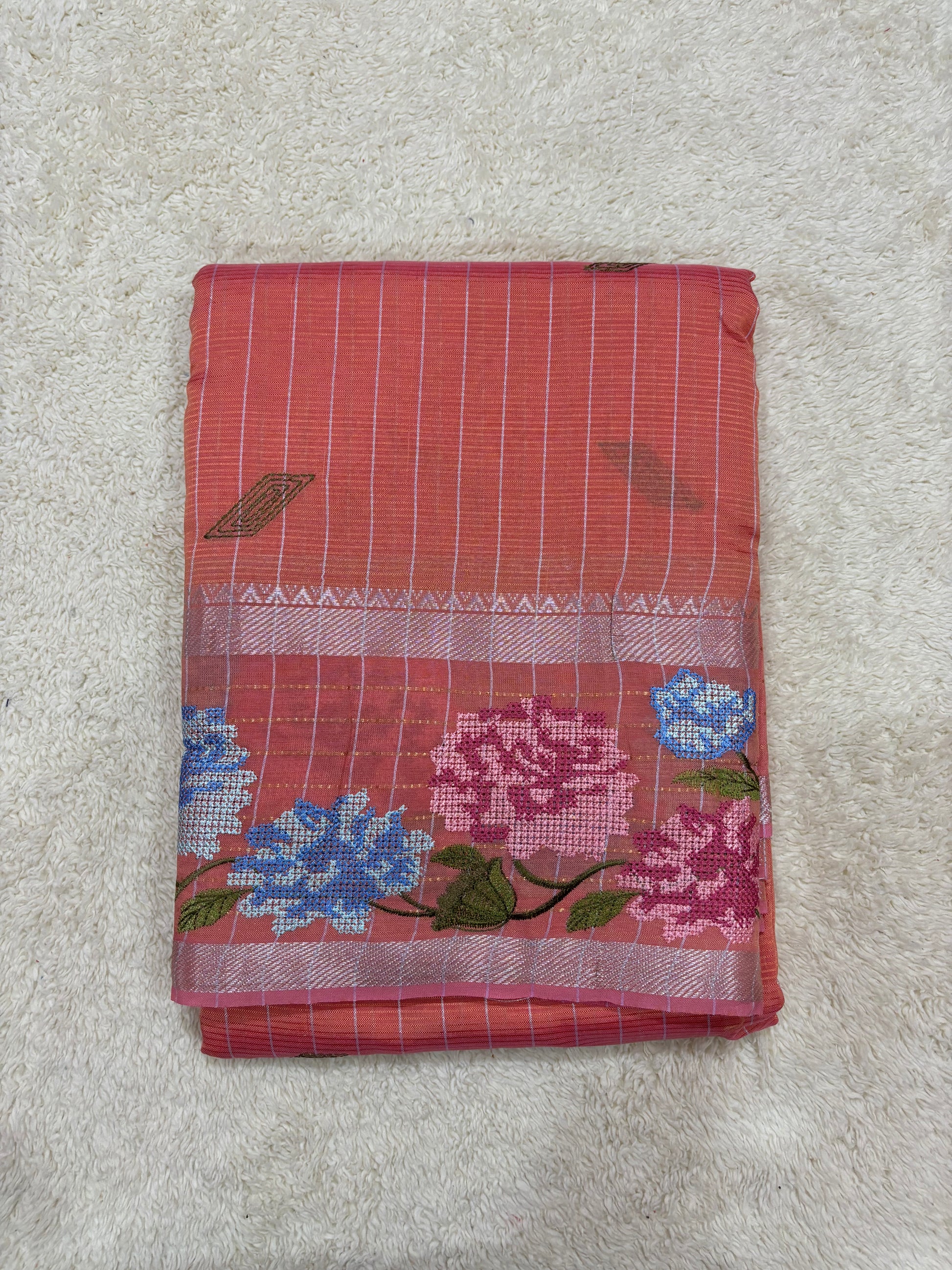 These sarees are with allover embroidery sarees. Perfect for celebrations or everyday sophistication, these sarees showcase the finest weaving techniques that have defined South Indian textile heritage for generations.