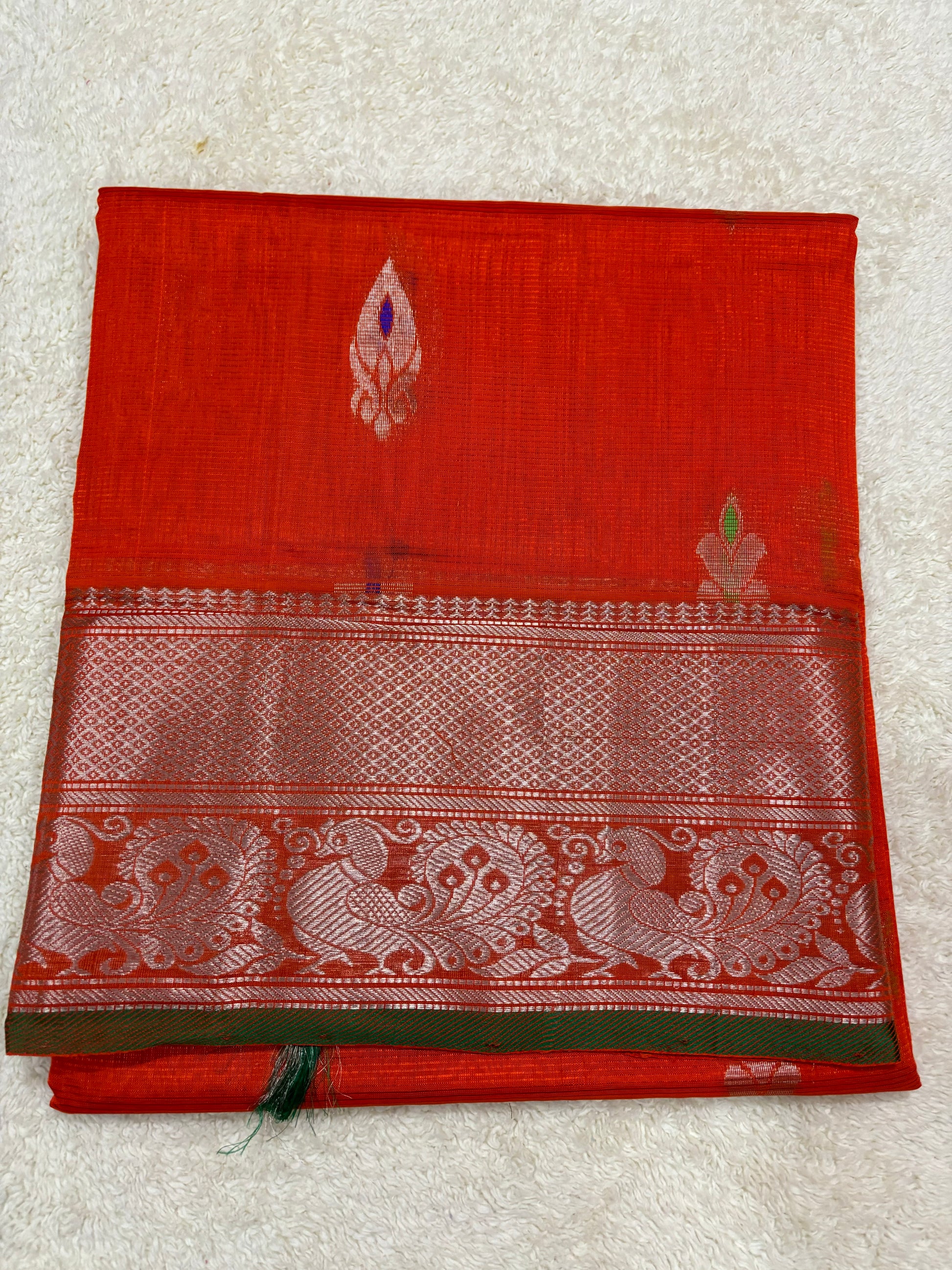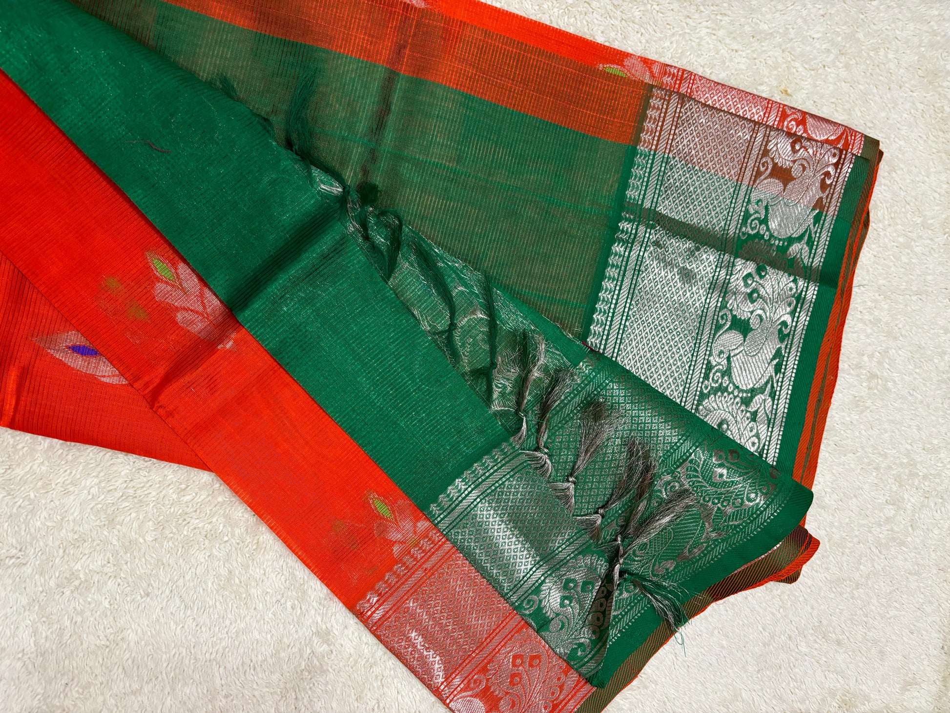 Color: Orange with green color saree