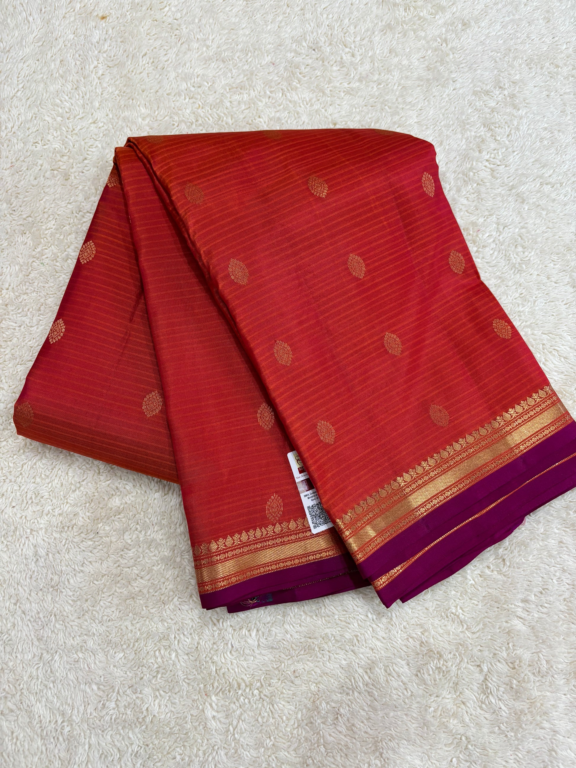 Colour: Rust orange saree pink border with gold patterns